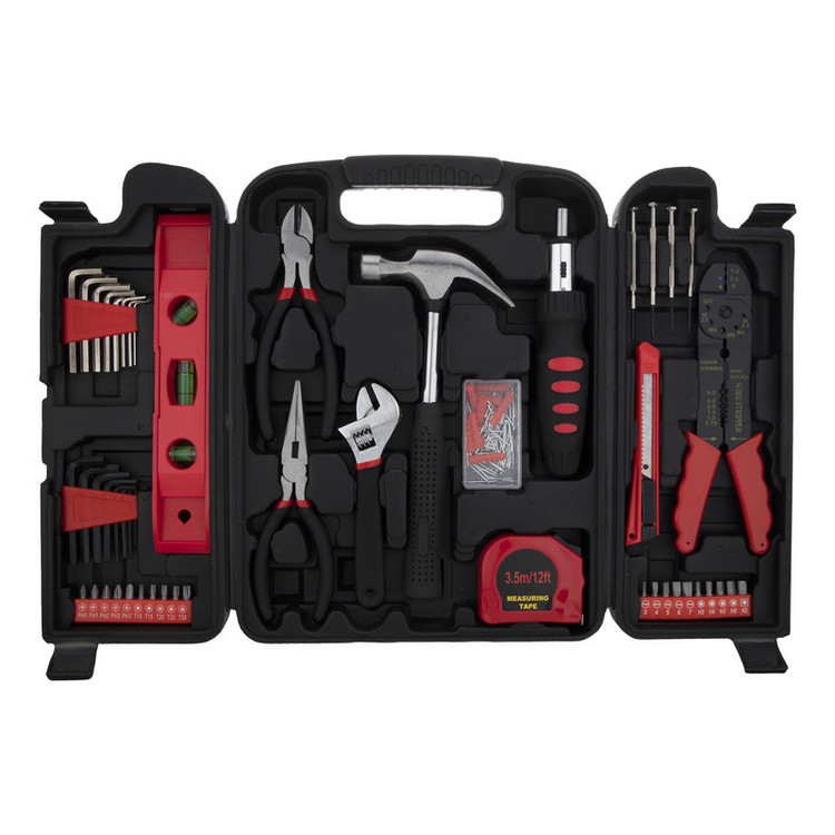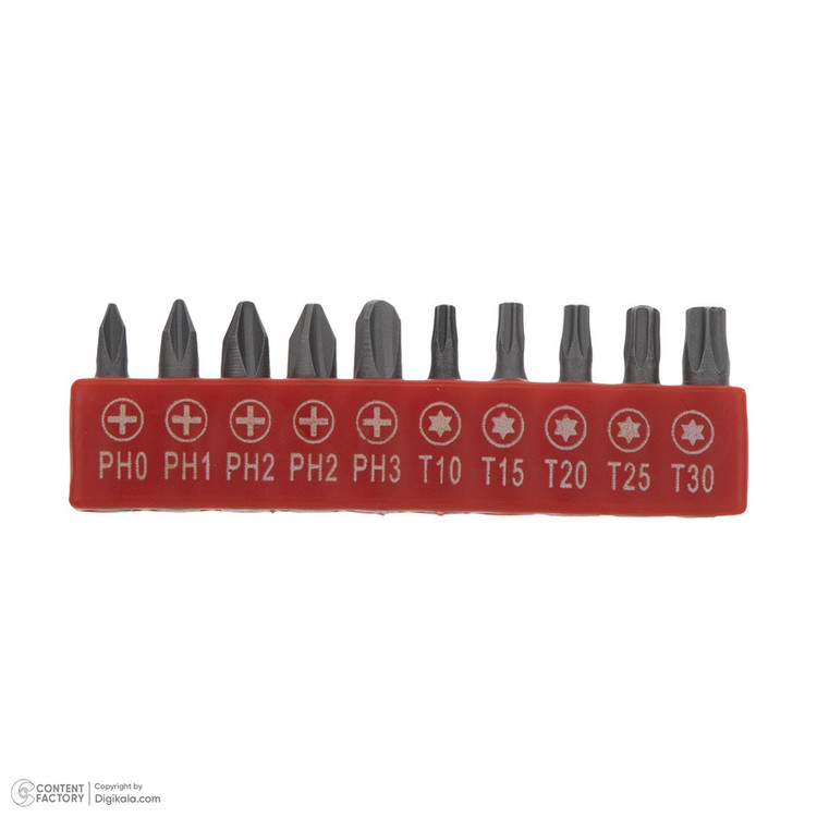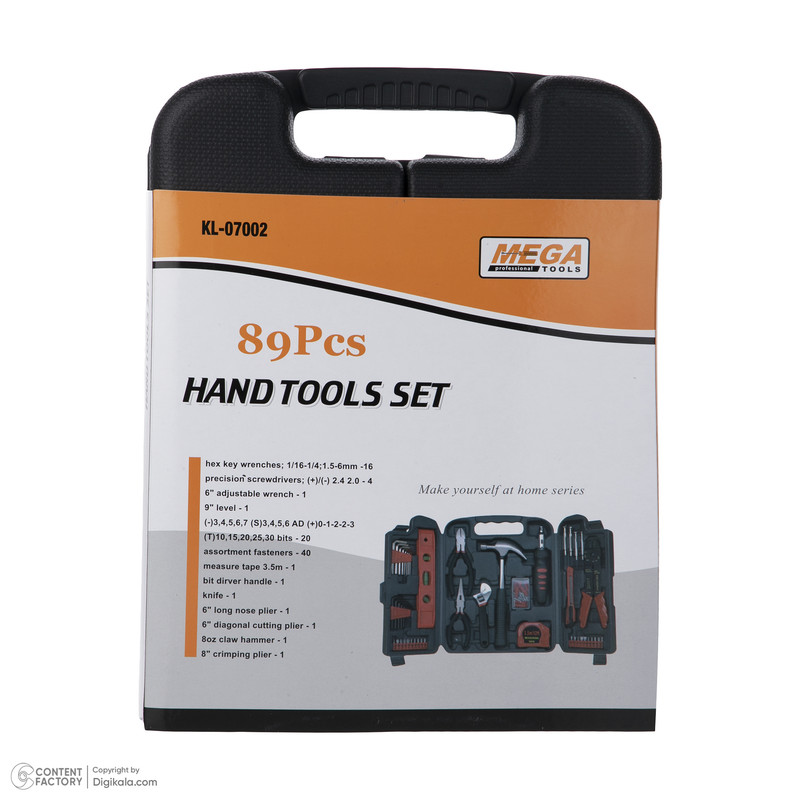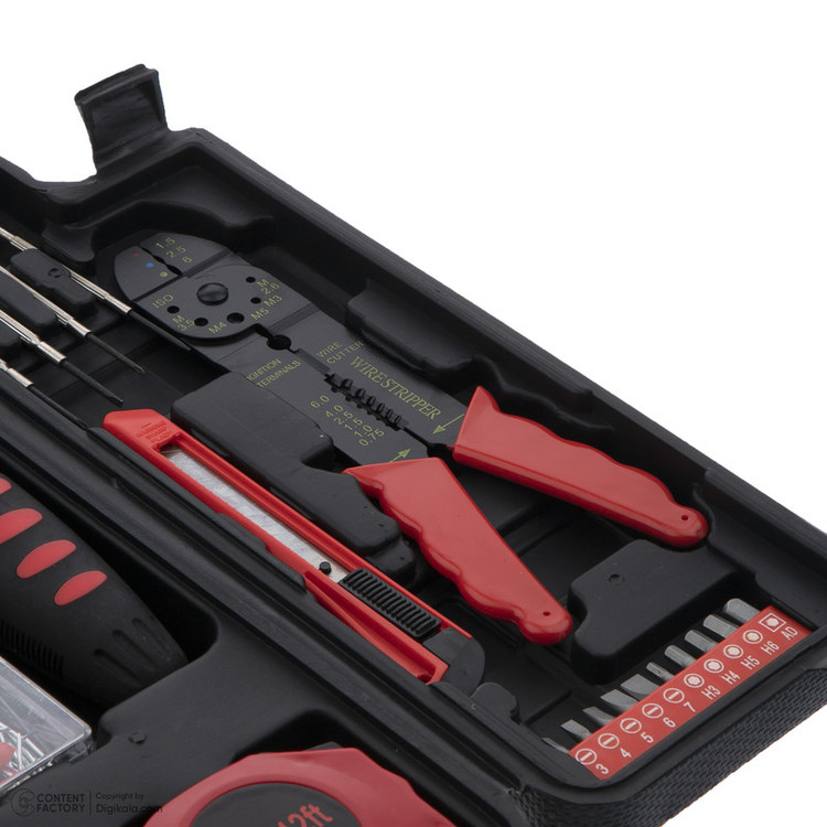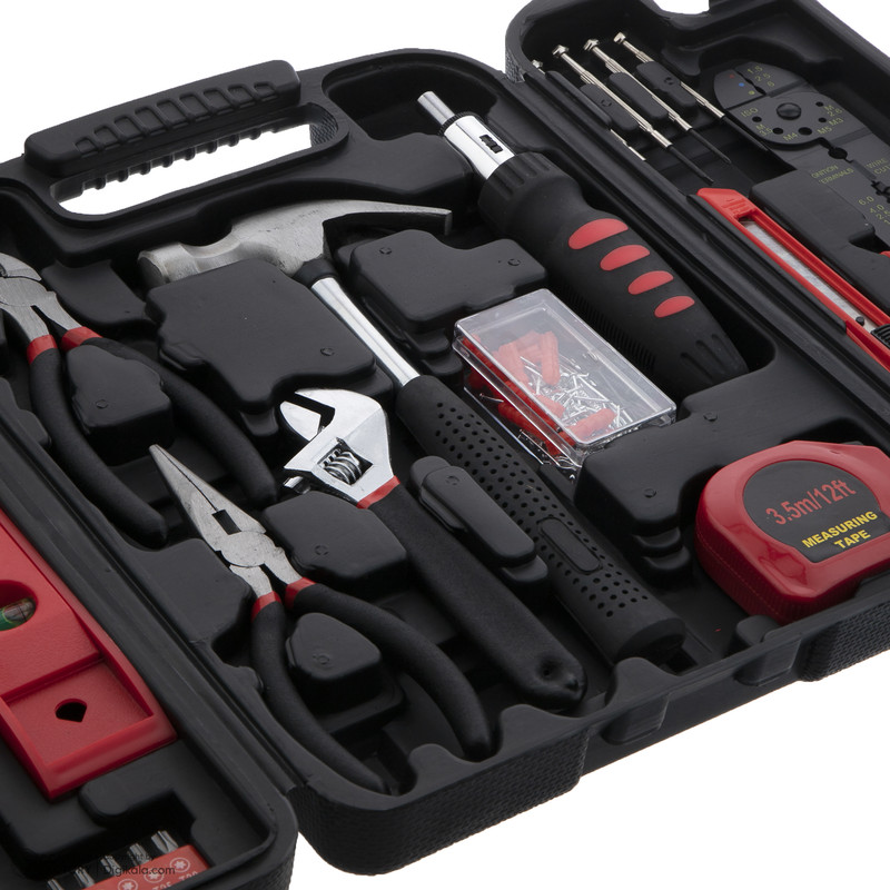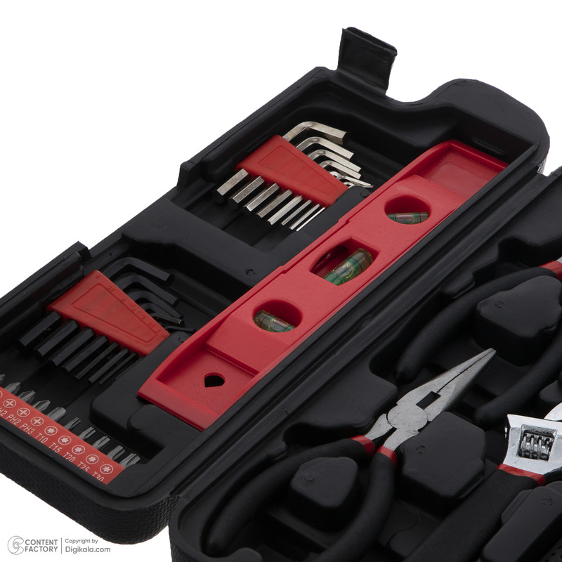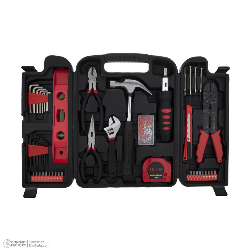محتویات مجموعه: آچار آلن , انبر دم باریک , انبر سیم لختکن , انبر سیمچین , پیچ گوشتی , تراز , چکش , دسته جغجغهای , سری پیچگوشتی , کاتر , متر , میخ