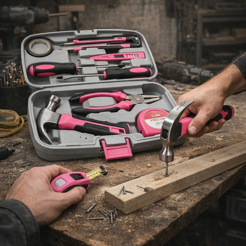 چکش , انبردست , پیچ گوشتی , کاتر , متر , فازمتر , چسب , کیف ابزار