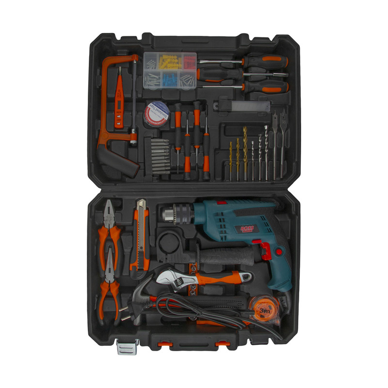 محتویات مجموعه: کیف ابزار , انبردست , آچار فرانسه , پیچ گوشتی , چکش , سری پیچگوشتی , سری بکس , فازمتر , انبر دم باریک , متر , کاتر , پیچ , رولپلاک , چسب , اره افقیبر , دریل پیچگوشتی , مته , تیغ کاتر