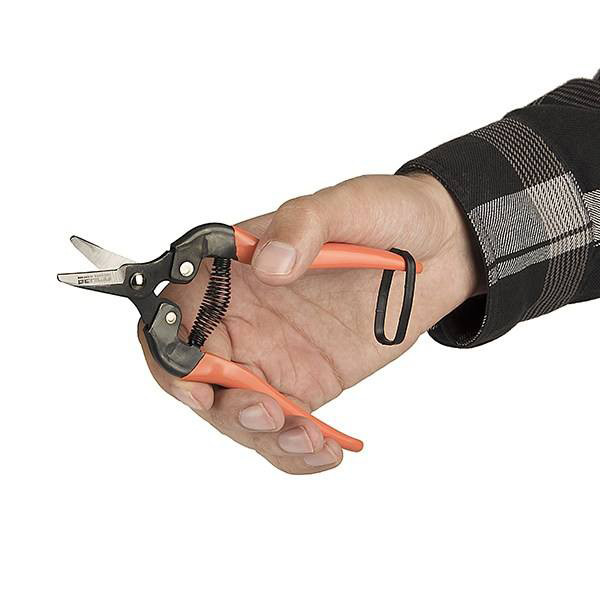 دارای سری کج و کوتاه برای چیدن انواع میوه دستهی آلومینیومی با روکش PVC تیغهای از جنس فولاد S50C طول تیغه 3.5 سانتیمتر
