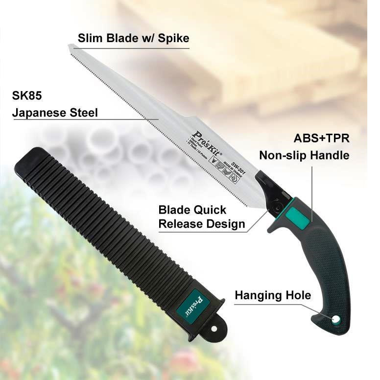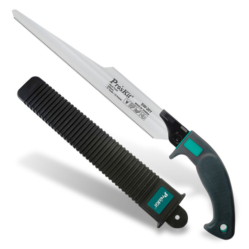 اره پروسکیت با دسته پلاستیکی ضد لغزش و ضد تعریق یکی از بهترین گزینه ها در بین هم رده های خود می باشد. همچنین غلاف تعبیه شده در این اره جهت جلوگیری از آسیب های احتمالی دارای تیغه سه طرفه جهت برش می باشد