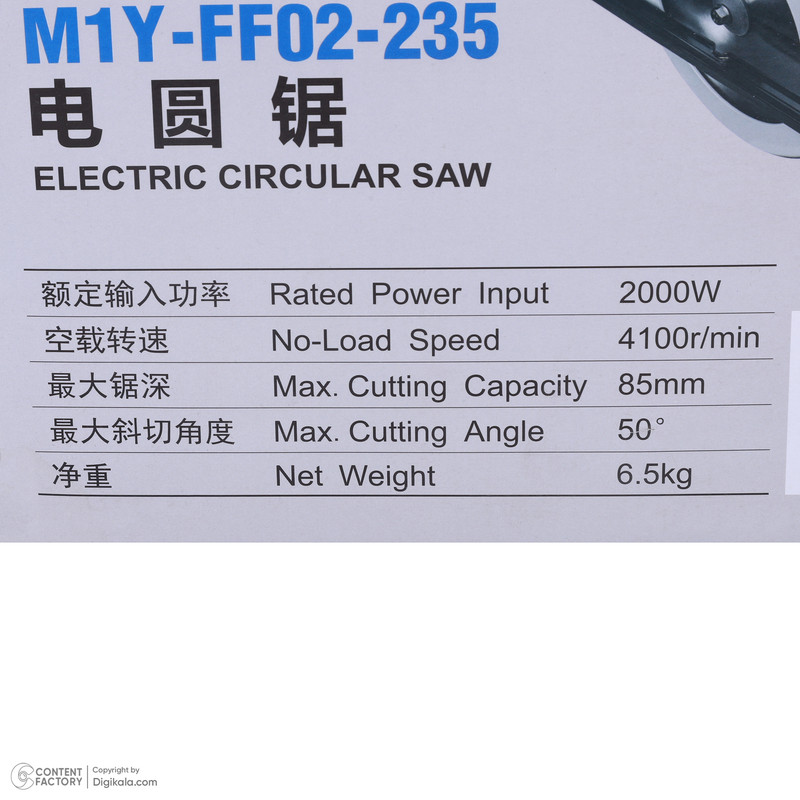 سرعت در حالت آزاد : 4100 دور در دقیقه/توان یا قدرت موتور : 2000 وات/قطر تیغه : 235 میلی متر