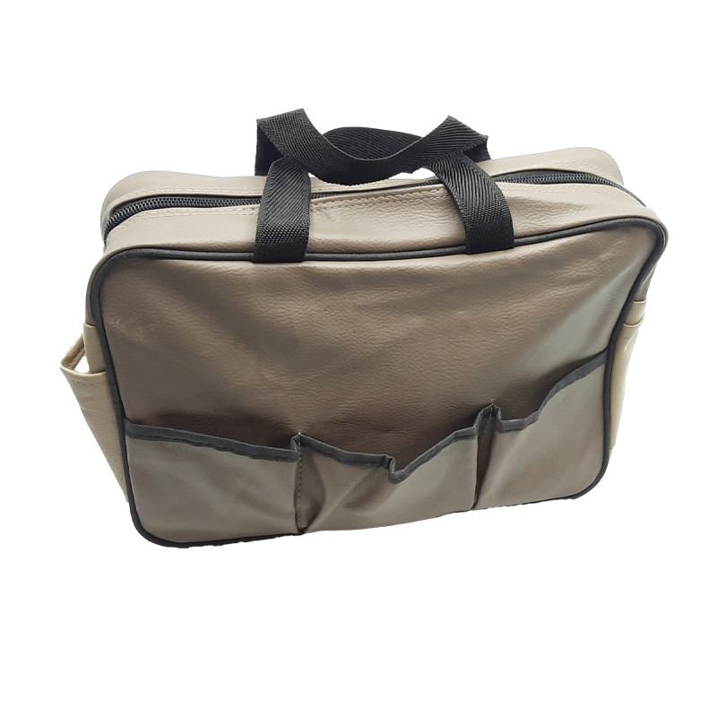 دارایه یک محفظه زیپ دار بغل دارایه سه عدد محفظه پشت کیف دارایه دو عدد در طرفین کیف