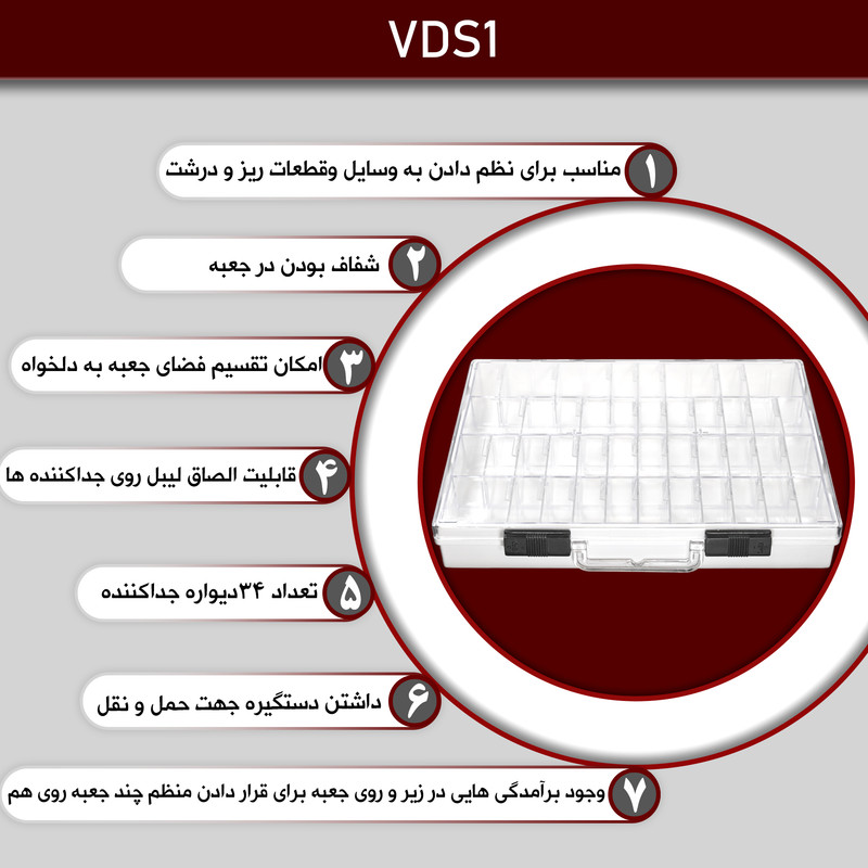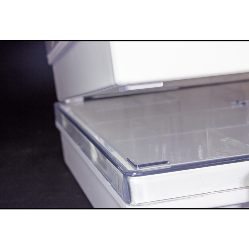 1-شفافیت در و قسمتهای داخلی 2-دسته لولایی 3-قابلیت تقسیم دلخواه فضا تا 40 قسمت 4-قابلیت شستشو 5-امکان قرار گیری روی هم بدون احتمال لغزش 6-امکان درج عنوان محتویات روی لبه پردهها