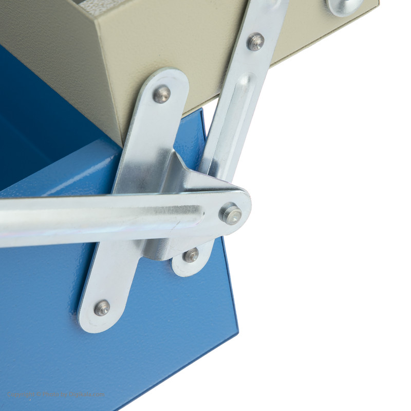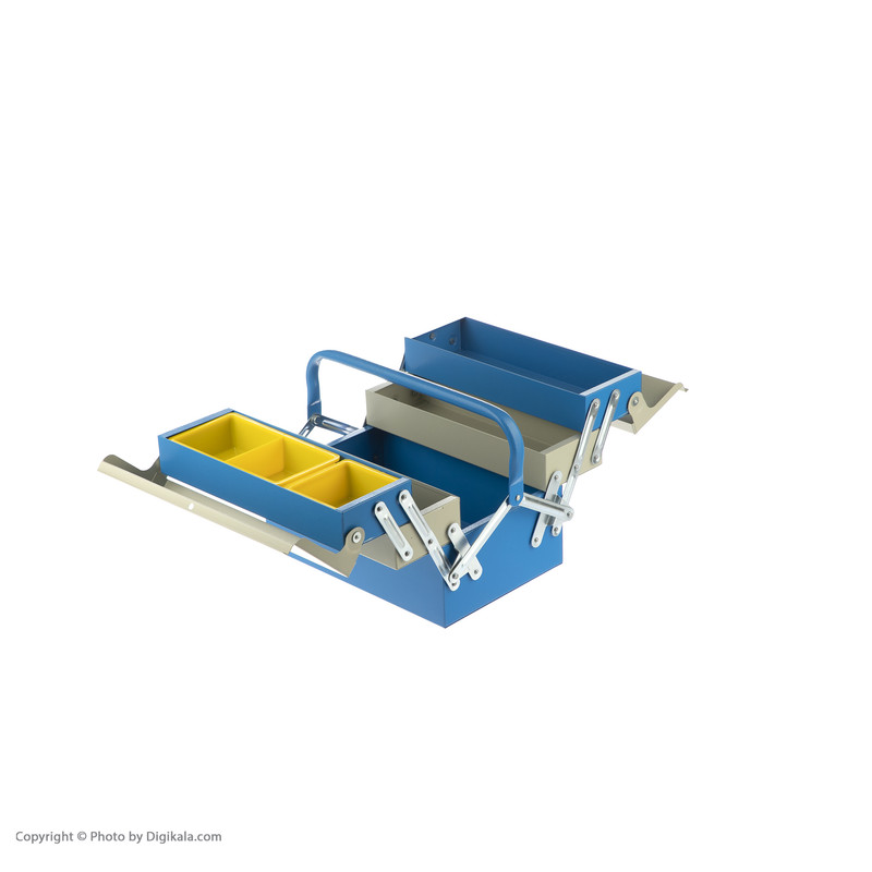 - 4 عدد نیم طبقه - دارای 3 محفظه کوچک پیچ و مهره در یک نیم طبقه - یک محفظه اصلی - پرچ های فولادی - رنگ استاتیک - اتوماتیک (با فشار دادن دسته به سمت پایین جعبه باز می شود و با بالا آوردن جعبه بسته می شود)