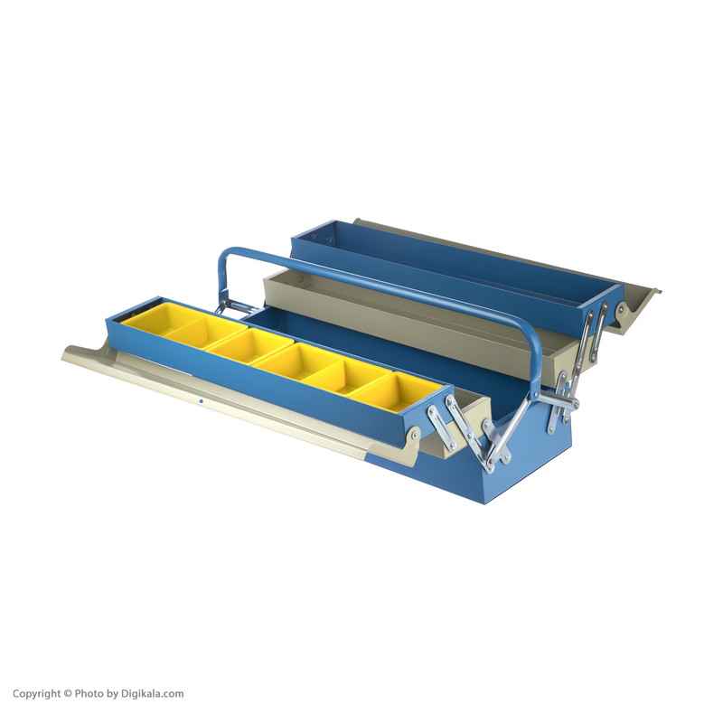 - 4 عدد نیم طبقه - دارای 6 محفظه پیچ و مهره در یک نیم طبقه - یک محفظه اصلی - پرچ های فولادی - رنگ استاتیک - اتوماتیک (با فشار دادن دسته به سمت پایین جعبه باز می شود و با بالا آوردن جعبه بسته می شود)
