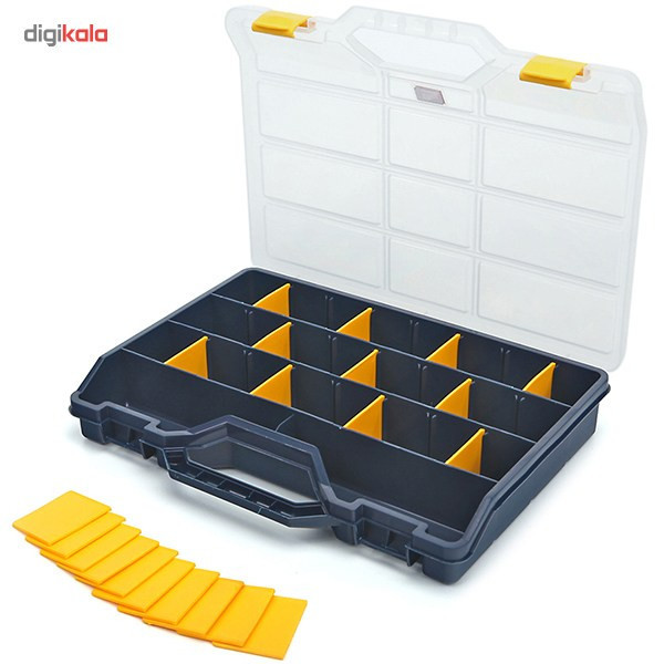 - دارای 21 عدد دیوایدر (جدا کنندهی محفظه) - قابلیت جابجا کردن جدا کنندهها - حمل آسان - مناسب برای نگهداری انواع جعبه ابزار و لوازم جانبی مختلف - دارای دو عدد قفل پلاستیکی - دارای درب شفاف - ساخت کشور اسپانیا