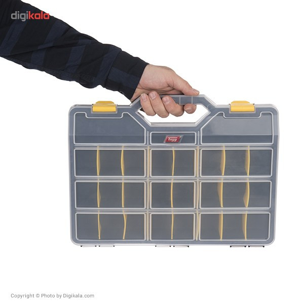 در صورتی که از به همریختگی و نامرتب بودن پیچ و مهره و ابزارهای کوچک خود خسته شده اید میتوانید از جعبه ابزار (N47) استفاده کنید. این جعبه ابزار توسط شرکت «تایگ» (Tayg) تولید میشود. این جعبه دارای 26 محفظهی مجزا بوده و شما میتوانید با کمک آن از لوازم و ابزارهای کوچکی مانند پیچها، مهرهها، میخها، سرسیمها و ... به خوبی و به شکلی تفکیک شده نگهداری کنید. یکی از نکات جالب توجه این جعبه، امکان جابهجایی جداکنندههای آن است و از این طریق شما میتوانید سایز محفظههای جعبهی خود را تغییر دهید و از آن برای نگهداری لوازمی بزرگتر استفاده کنید. این جعبهی ابزار، سایزی برابر 5.5 × 29 × 37.5 سانتیمتر دارد و وزن آن کمتر از 800 گرم است. در جعبه ابزار فوق از پلاستیکی شفاف ساخته شده است و به شما این امکان را میدهد که درون جعبهی ابزار را مشاهده کرده و ابزار مورد نظر خود را سریعتر پیدا کنید. این در دارای دو چفت پلاستیکی مستحکم است و برای حمل راحت جعبه، دستهای روی آن تعبیه شده است. به همراه داشتن این جعبه ابزار در کنار کیف یا جعبهی ابزاری بزرگتر کارایی بسیاری خواهد داشت.