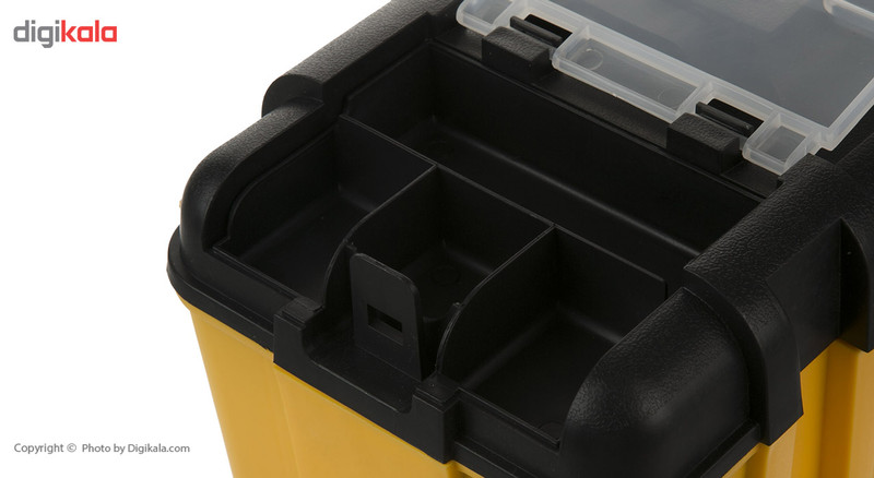 - دارای 1 سینی قابل حمل با 2 محفظه - دارای 1 محفظهی اصلی - دارای قفل فلزی و دستهی پلاستیکی - دارای 2 بخش درپوشدار روی در جعبه با 8 محفظهی مجزا