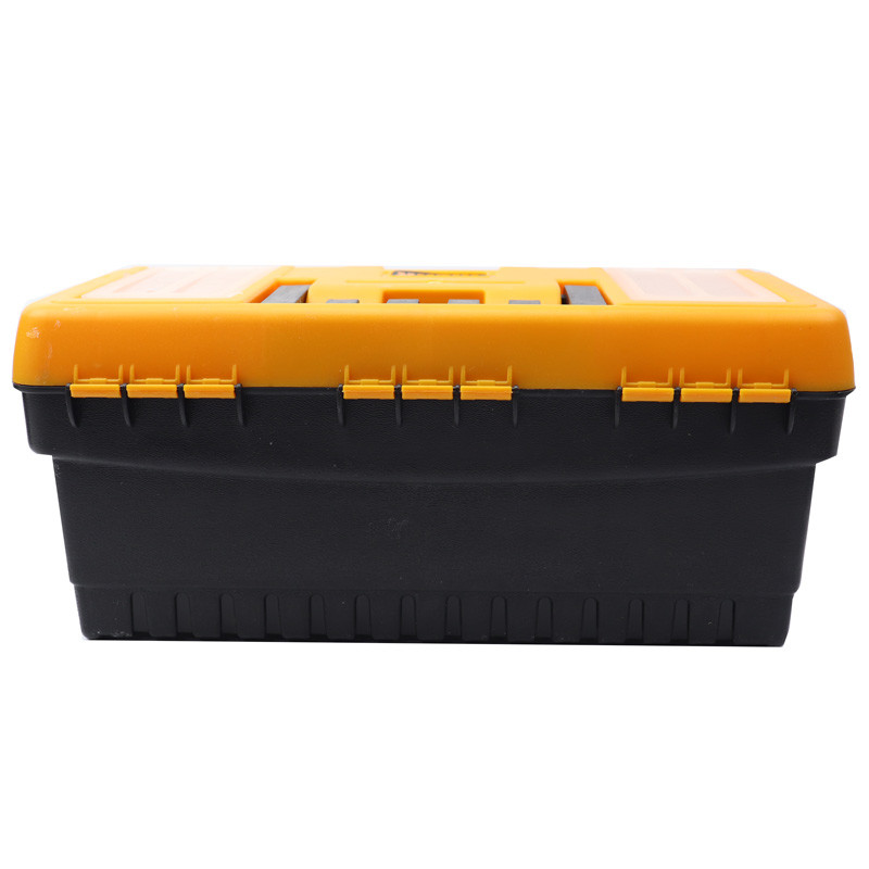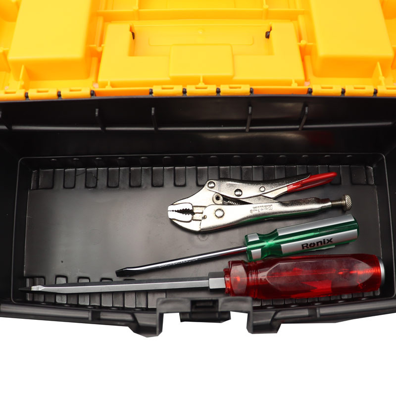 این جعبه ابزار پلاستیکی از جنس پروپیلن(PP) ساخته شده است. دلیل انتخاب این پلیمر در ساخت آن، کیفیت مناسب، سبک بودن و همینطور ارزانتر بودن قیمت نهایی محصول و قابل بازیافت بودن آن است که به شما کمک میکند بدون آسیب به محیط زیست، برای مدت طولانی از این جعبه ابزار استفاده نمایید.