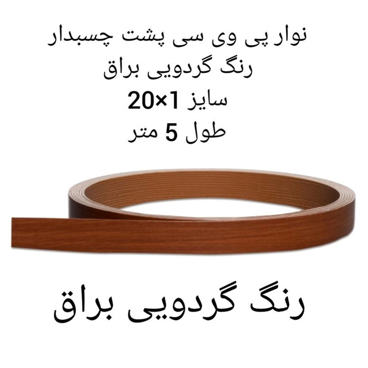 نوار اتویی پی وی سی پشت چسبدار سایز1x20 رنگ گردویی براق رول 5 متر این نوار پشت چسبدار میباشد و با اتو یا سشوار به راحتی نصب میشود