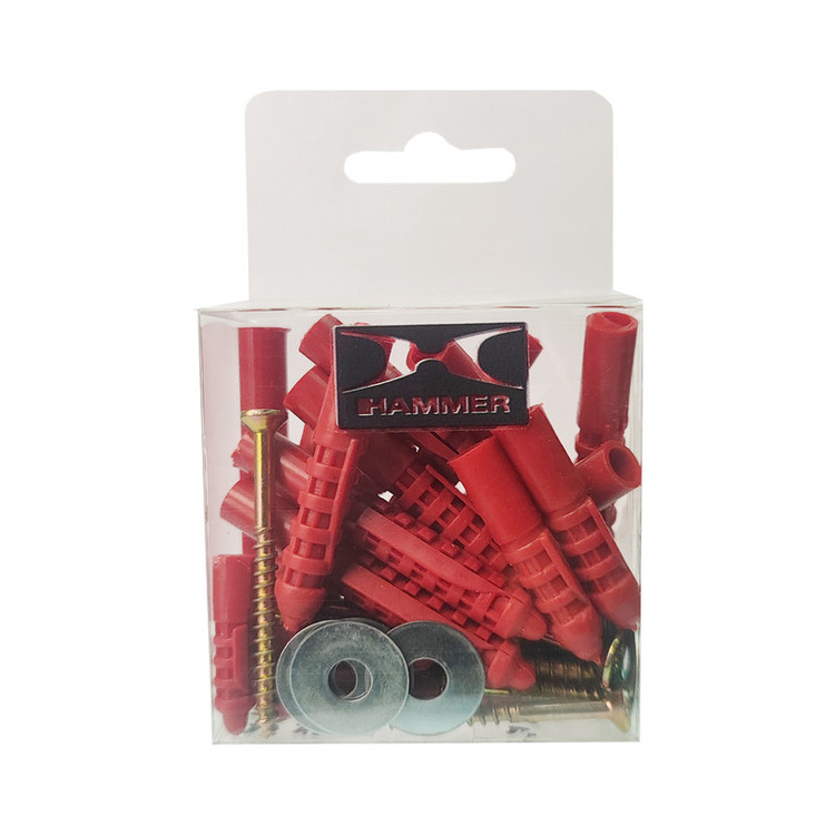 دارای 4 سایز طول ، 20 عدد پیچ (۳ و ۴ و ۵ و ۶ سانتی متر هر کدام ۵ عدد) ، 20 عدد رولپلاک ساده (۳ و ۴ و ۵ و ۶ سانتی متر هر کدام ۵ عدد) ، 20 عدد واشر دور 20 میلی متر ، بسته بندی به صورت طلق با برند حک شده هامر