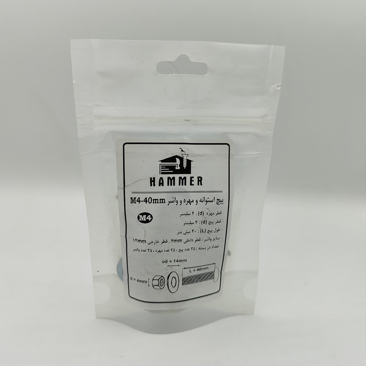 سایر توضیحات: بسته بندی زیپ دار با برند هامر مطابق تصویر ، دارای قطر استاندارد 4 میلی متر و طول پیچ استوانه 4 میلی متر ، بسته بندی 75 عددی (( توجه : لطفا جهت خرید به مشخصات فنی ترسیم شده و ذکر شده در تصاویر توجه کنید))