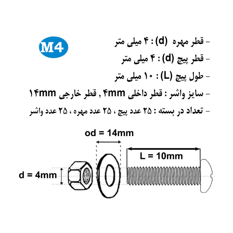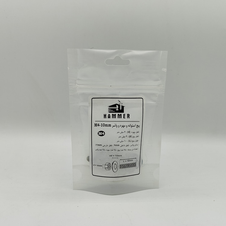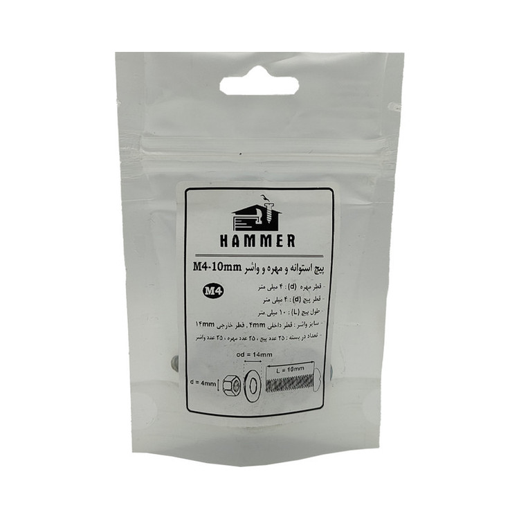 سایر توضیحات: بسته بندی زیپ دار با برند هامر مطابق تصویر ، دارای قطر استاندارد 4 میلی متر و طول پیچ استوانه 4 میلی متر ، بسته بندی 75 عددی (( توجه : لطفا جهت خرید به مشخصات فنی ترسیم شده و ذکر شده در تصاویر توجه کنید))