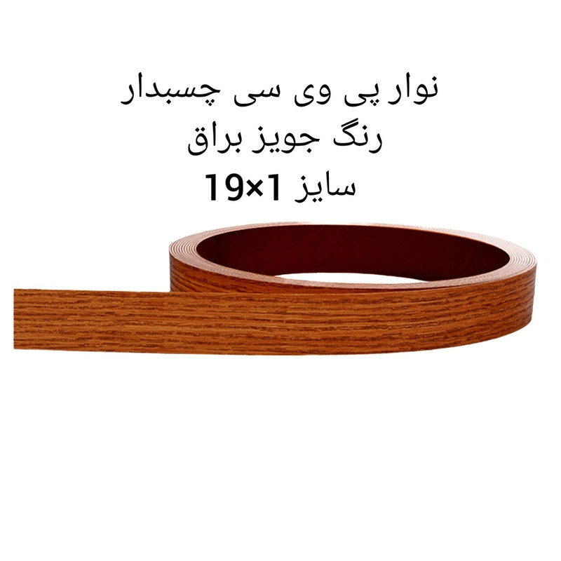 نوار لبه ام دی اف پشت چسبدار سایز عرض 19میلیمتر ضخامت 1 میلیمتر به طول 10 متر رنگ جویز براق طریقه چسباندن فقط بااتو یا سشوار امکان پذیر است