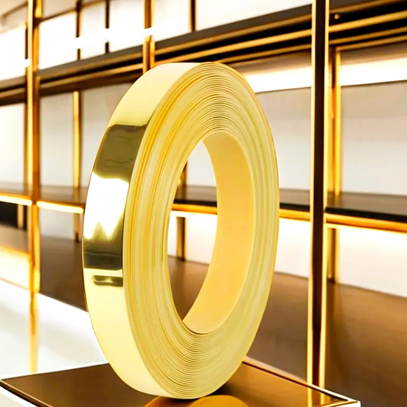 نوار لبه پی وی سی پشت چسبدار اتویی سایز ۱×۲۰ رنگ طلایی براق به طول ۱۰متر