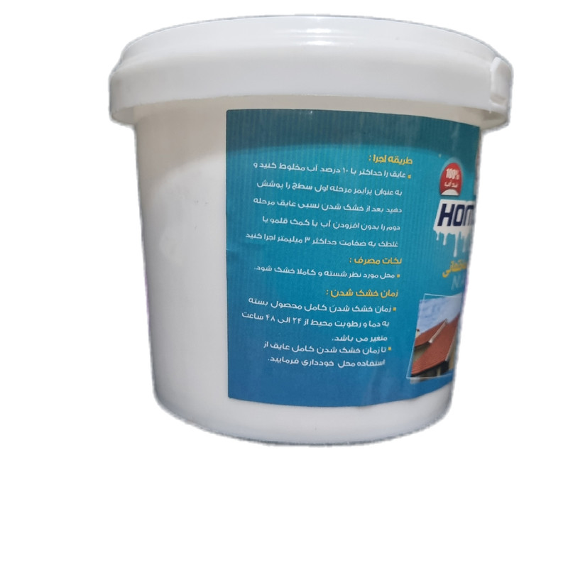عایق سفید ساختمانی اماده مصرف میباشد،اب بندی پشت بام،شیروانی،ترک های پشت بام،ترمیم ایزوگام،طریقه اجرا: عایق را با حداکثر 10درصد اب مخلوط کنید به عنوان پرایمر مرحله اول سطح را پوشش دهید بعد از خشک شدن نسبی عایق مرحله دوم را بدون افزودن اب با کمک قلمو یا غلطک به ضخامت 3میلیمتر اجرا کنید،زمان خشک شدن کامل محصول بسته به دما و رطوبت محیط بین24الی48ساعت متغیر میباشد،تا زمان خشک شدن کامل عایق از استفاده محل خودداری کنید