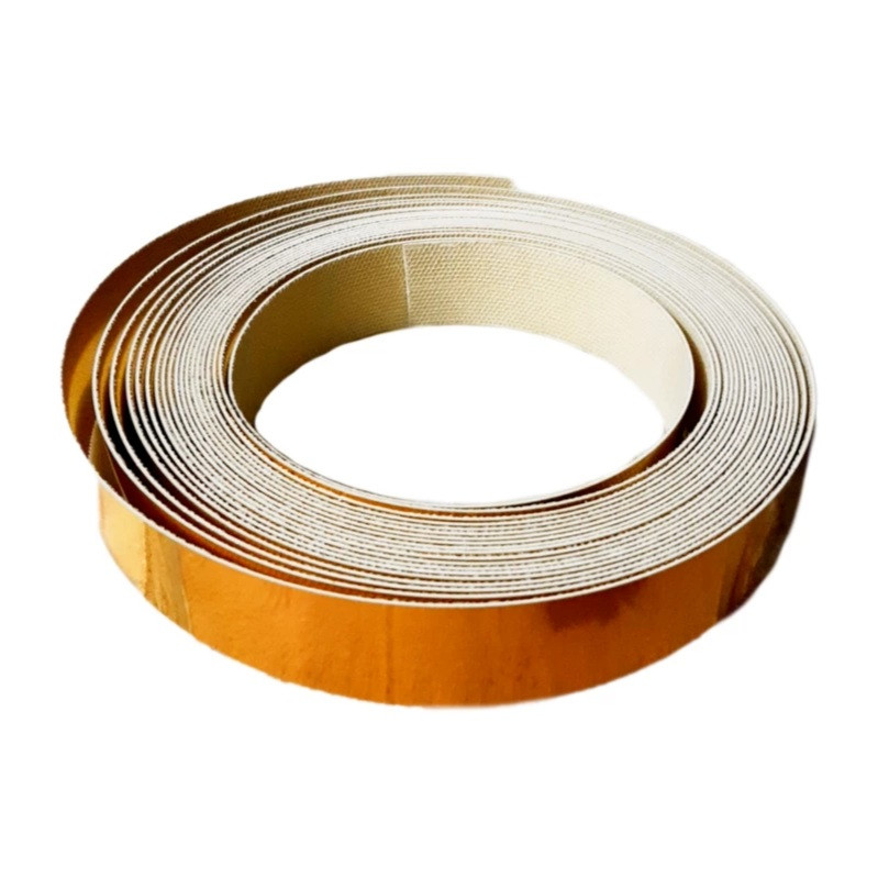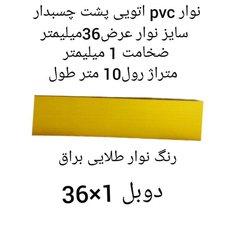 نوار لیه پی وی سی رنگ طلایی براق پشت چسبدار سایز دوبل 1x36 برای کارهای باضخامت 32میلیمتری رول 10 متر
